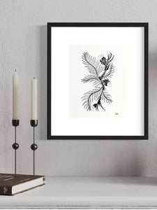 Photo print of original drawing, "Wonky Vines" available in 8 x 10 in. without photo mat boarder or 11 x 14 in. with white photo mat boarder. FRAME NOT INCLUDED. Original materials used : black pen on art paper.